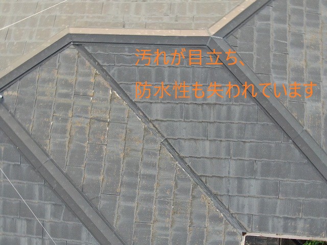 越谷市で屋根塗装!汚れが目立ち防水性が失われています!!