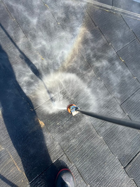 洗浄後、屋根スレートに割れやヒビがないか確認します!!