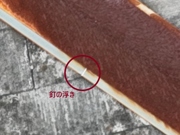 また、棟板金を固定している釘が浮いしまっているところが数カ所あり、このまま放置しておくと、釘が抜け、棟板金自体の浮きに繋がってしまう可能性もあります。