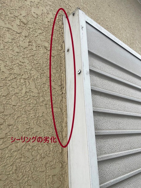 また、外壁と窓の境目に充填されているシーリングに劣化がみられました。