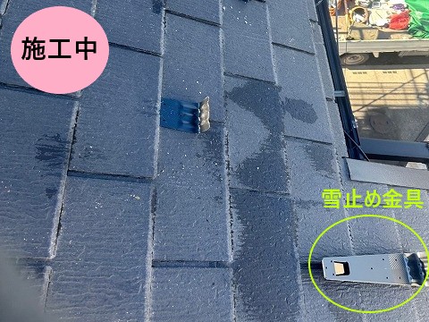 今回のお客様は スレート屋根 でしたので、最も相性の良い 雪止め金具 の後付けをご提案しました。