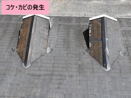 実際に屋根を点検したところ、スレート屋根全体に劣化が見られました。