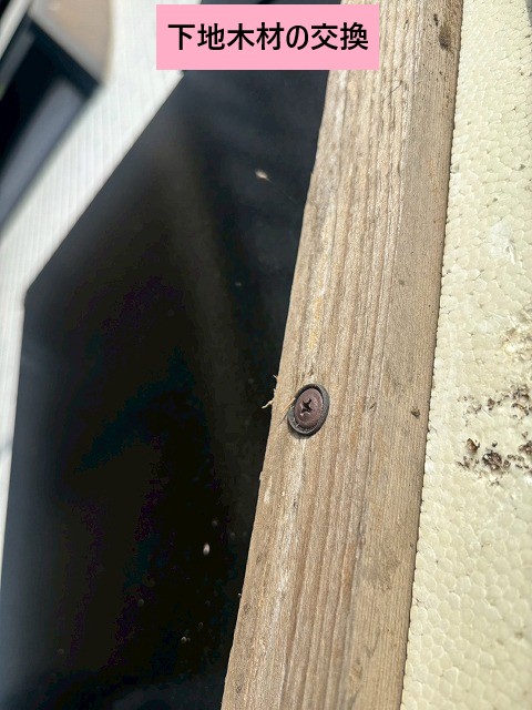 このまま新しい板金だけ付けても長持ちしないため、傷んだ下地を撤去し、新しい木材へ交換しました。