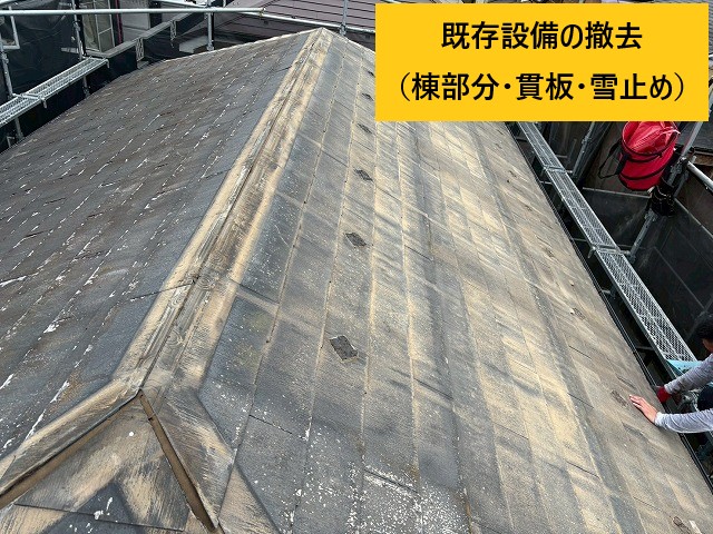 まずは既存の棟板金、貫板、雪止めをすべて撤去します。