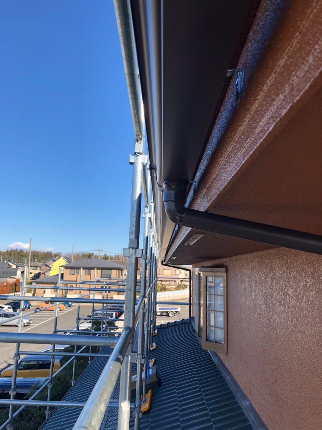 雨樋工事は、既存の雨樋を全て外しビスなどで空いてしまった穴をコーキングで補修し、外壁塗装の時に塗装も終えています。