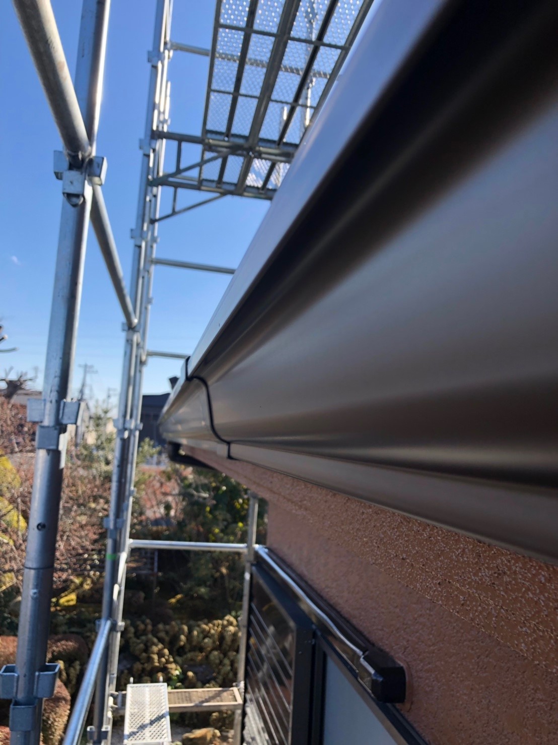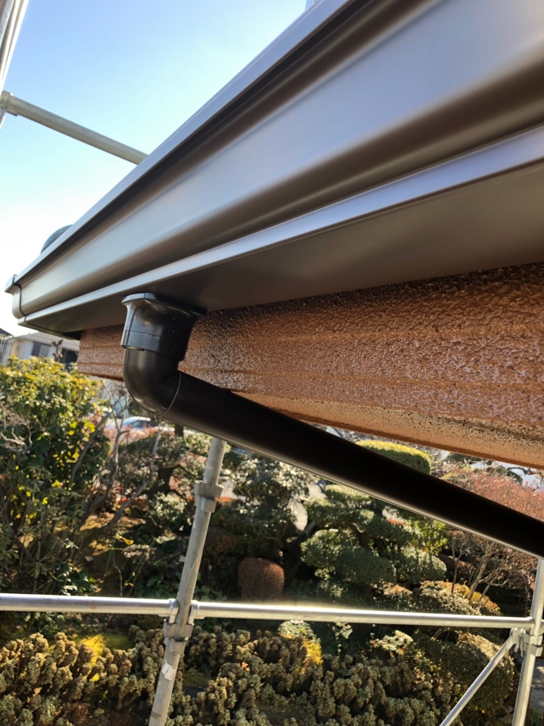 吉川市で塗装が終わり、自然災害で歪んでしまった雨樋の交換工事をしました!