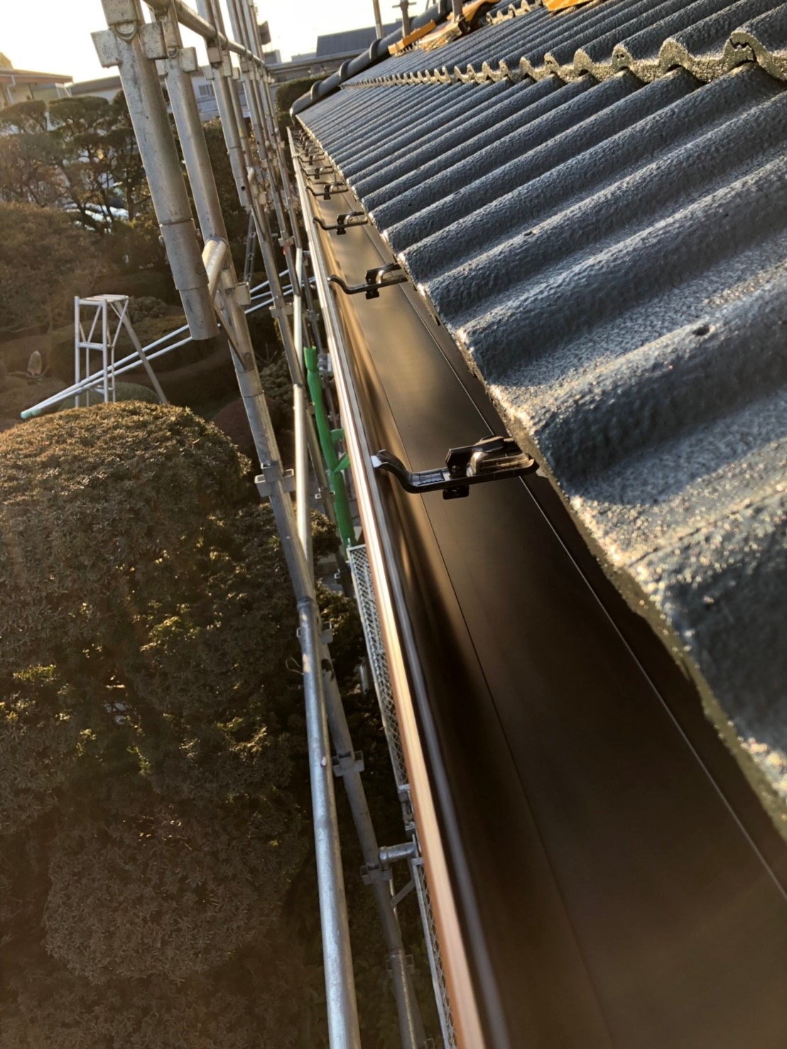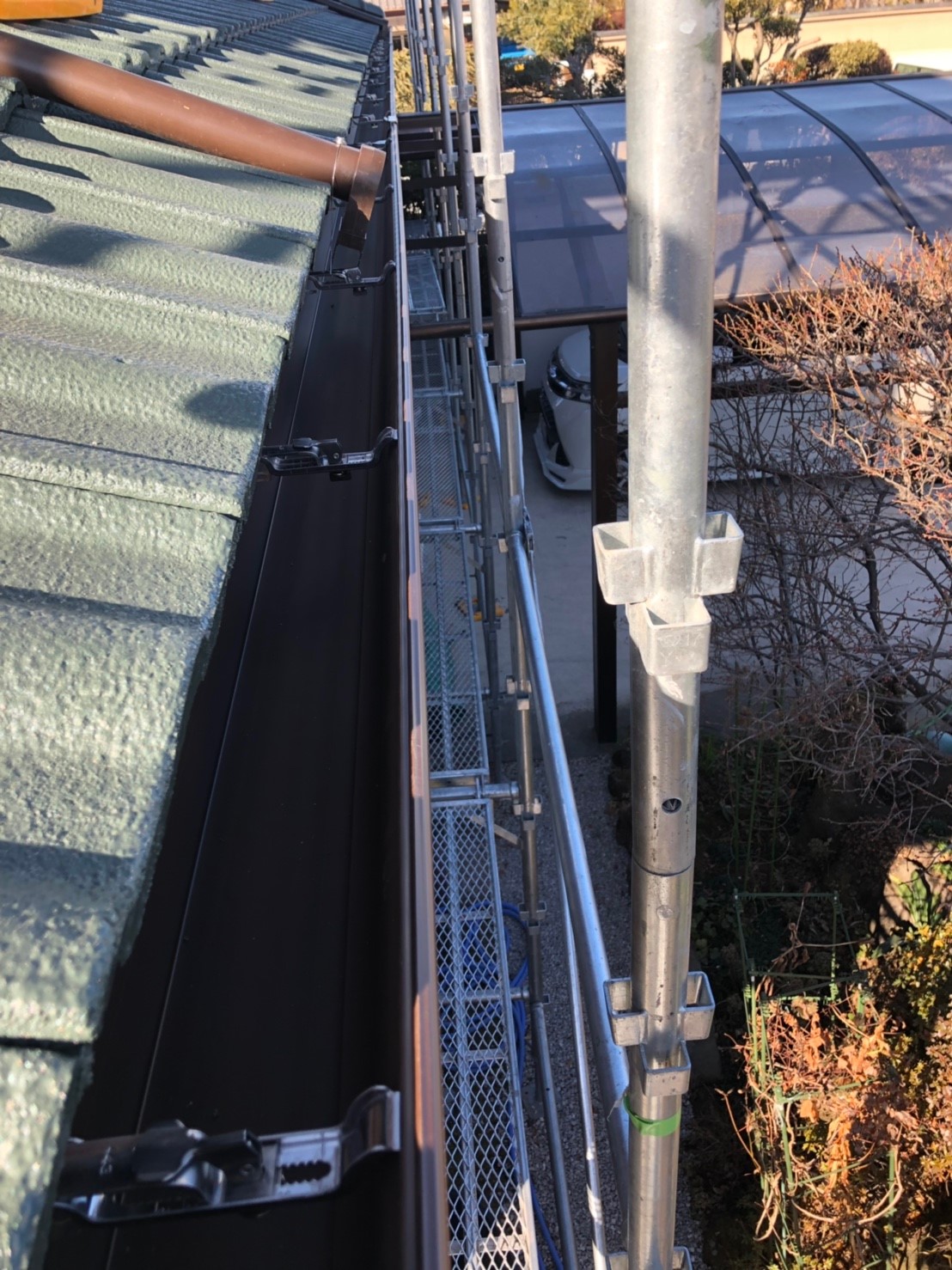 新たに雨樋を取り付ける箇所に金具を取り付け、雨樋も設置していきます。