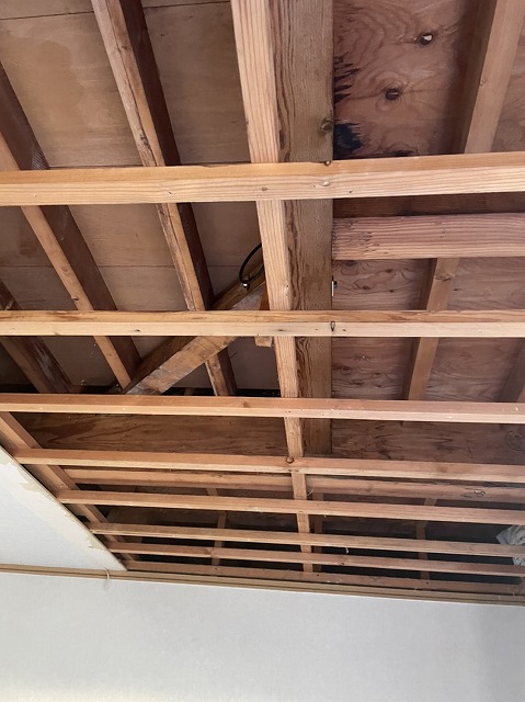 雨漏りしていたリビングの天井を開いて、散水確認をしていました。