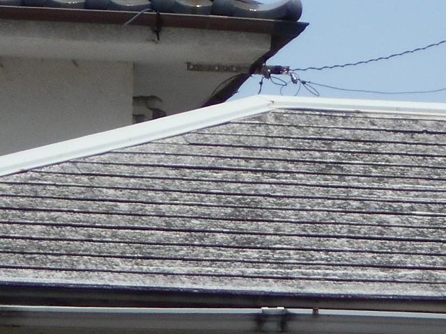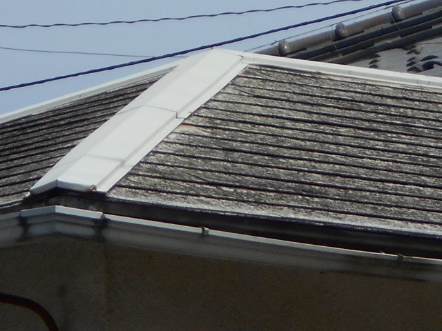 大垣市にて化粧スレート屋根の現場調査すると大きくひび割れが発生していました