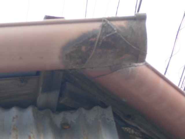 このように軒樋が下がってしまいますと雨水を受けれなくオーバーフローしてしまいます。