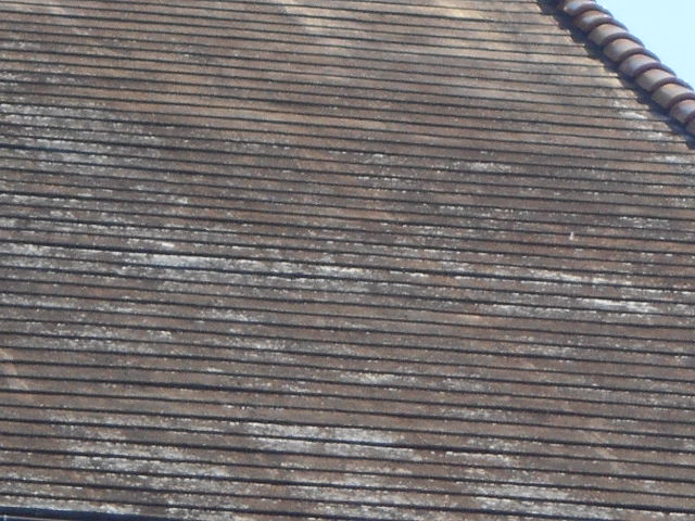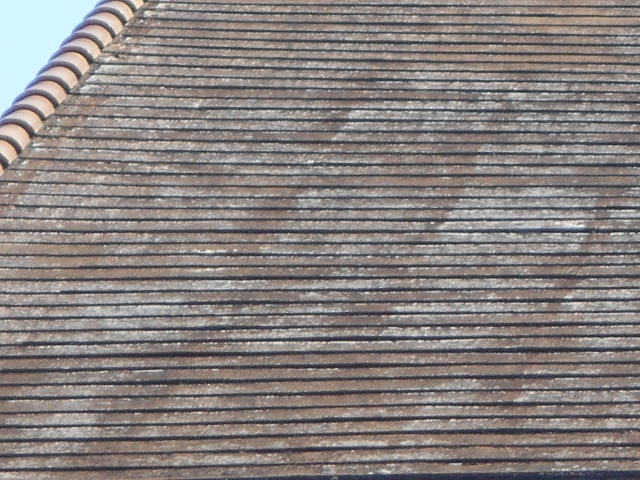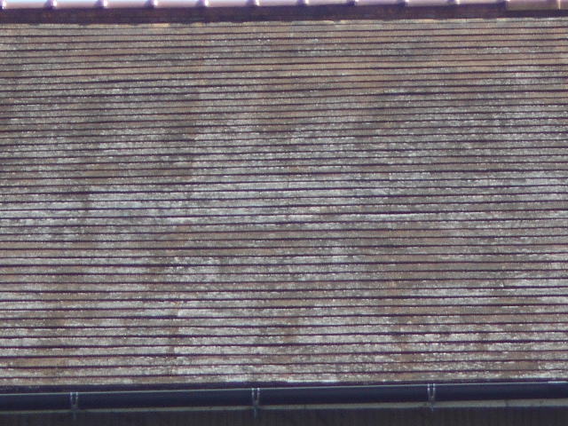 大垣市にてカラーベスト屋根の現場調査に行くと塗膜が剥がれて素地が露出していました