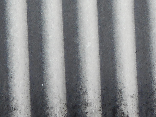 大波スレートの表面がボロボロでコケが生えている状態です。