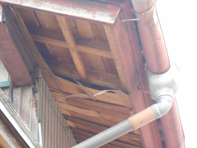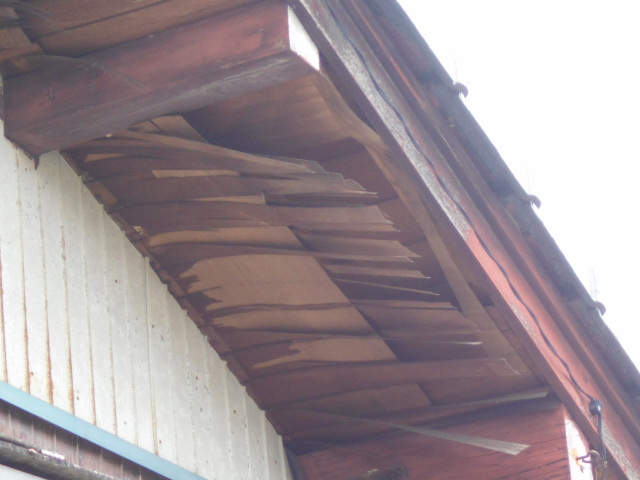 ホーム > 岐阜市にて軒天の現場調査に行くと劣化と強風でボロボロになって…