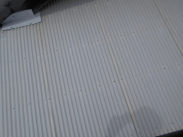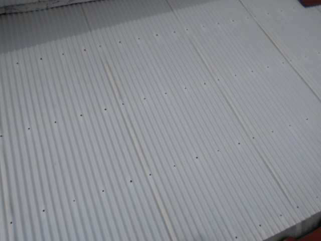 お話を聞くと、何度か屋根の補修は行ってきたそうですが、全体的にトタンの表面の劣化が確認できます。