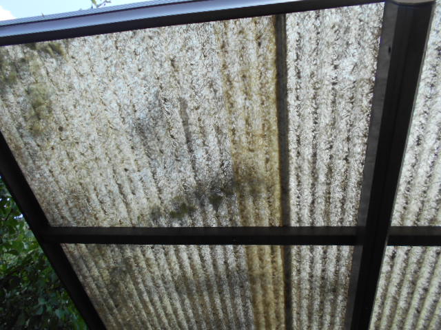 波板の重ね部分が黒く、土や埃が詰まっていました