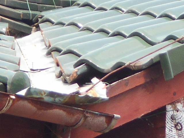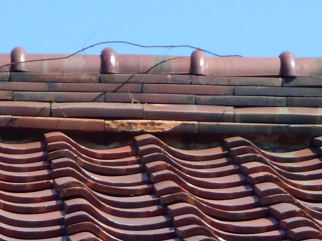 漆喰が剥がれますと棟瓦にも影響を与え、土や漆喰の劣化が棟瓦の歪みを引き起こし、そこから入った雨が屋根裏に廻り最終的には雨漏りする可能性もあります。