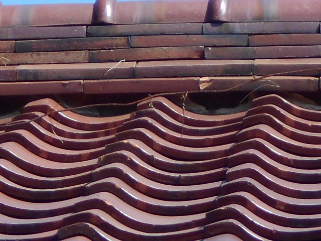 瓦の様子ですがズレがかなり大きく発生しており、瓦自体のガタつきも多く広範囲で出ています。