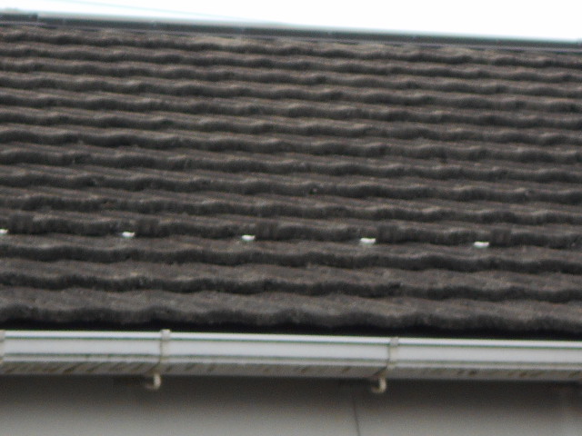 写真は北面の屋根の様子ですが、黄色く見えますのがコケが生えている状態です。