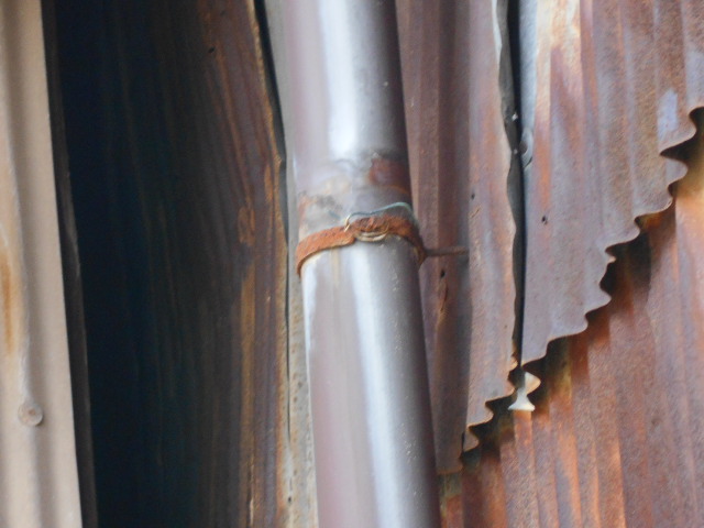 近くで見てみると軒樋を固定している金具が錆びて劣化していました。