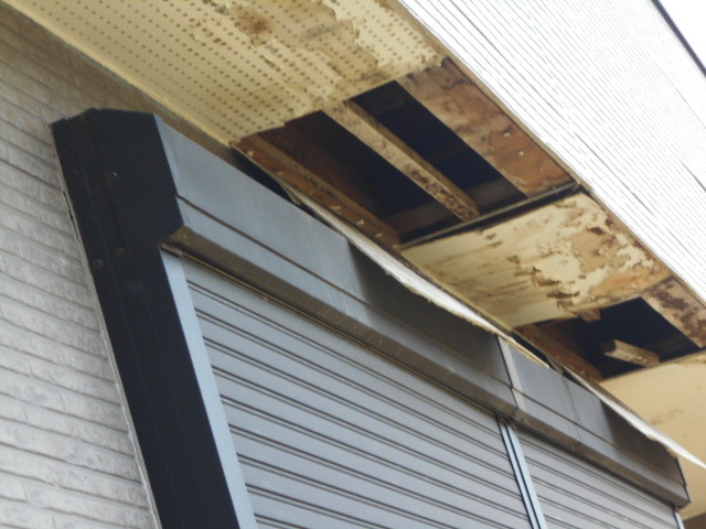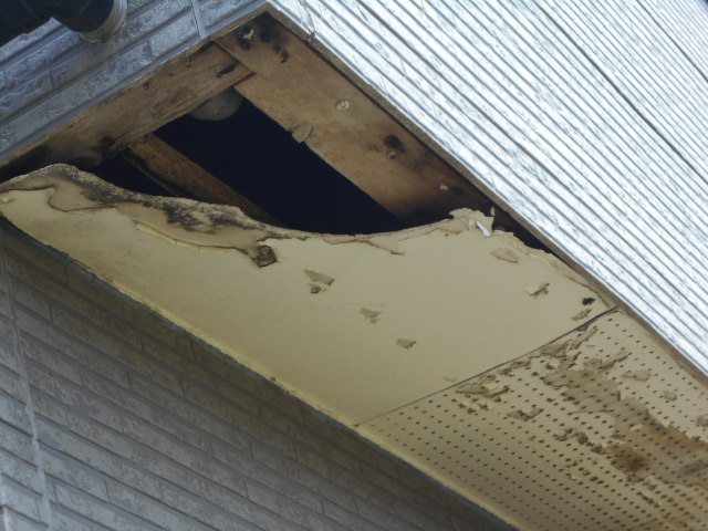 現地に到着してすぐに目につきましたのが、軒天が剥がれ落ちている状態でした。