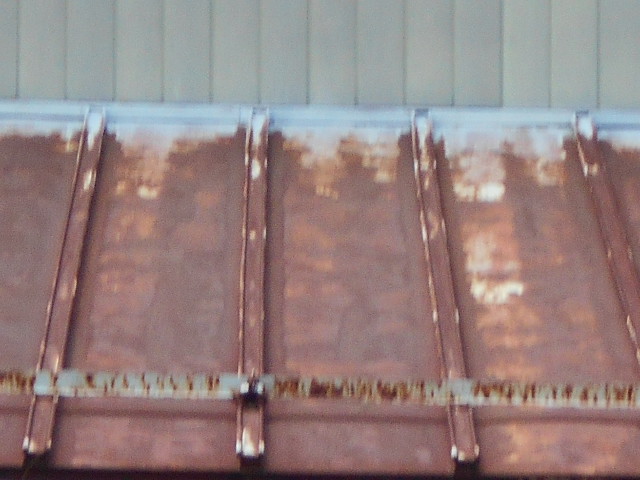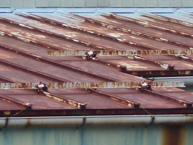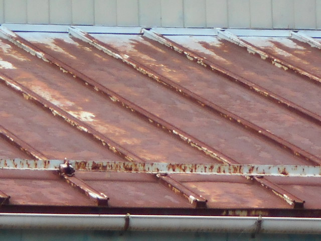 屋根に上がり周りを見渡すと、この瓦棒葺きの板金屋根は非常に錆が著しい状態でした。