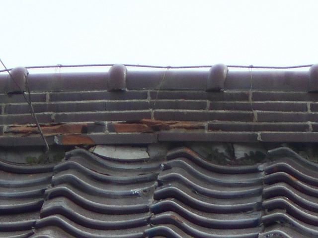 大垣市にて築30年以上経過した瓦屋根の現場調査に行くと漆喰が剥がれ落ちていました