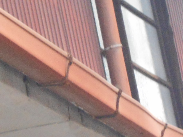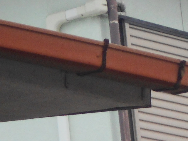 近くで見てみると軒樋を固定している金具が錆びて劣化していました。
