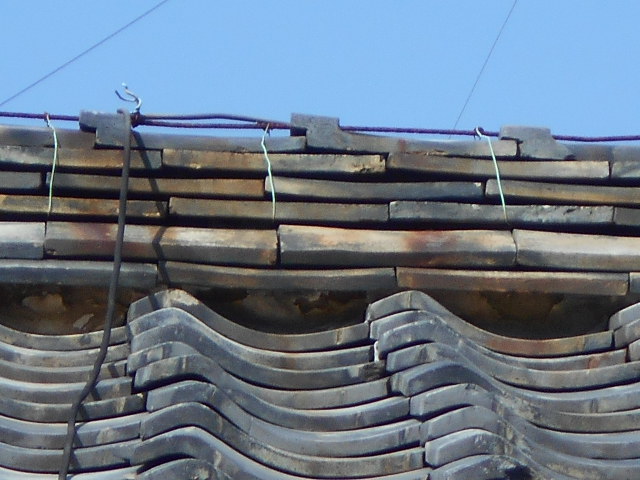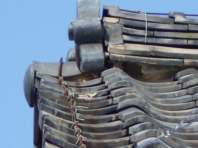 岐阜市にて瓦屋根の現場調査に行くと棟に詰めてある漆喰が剥がれ落ちていました