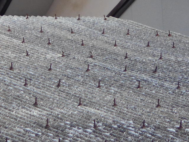 ホーム > 岐阜市にて物置の塩ビ波板屋根の現場調査に行くと変形変色して波…