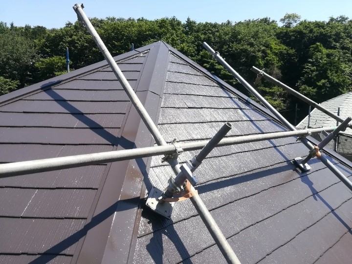 最近このようなお問い合わせが多くなっておりますので怪しさ半分で屋根に登らせて周りを見渡すと、工事をしているような様子のお宅は全くありませんでした。今回の様に工事してたら見えたとよく聞く話ですが、よっぽど棟が崩れているか飛散していなければ肉眼では確認できません。こういった文言には気を付けましょう。