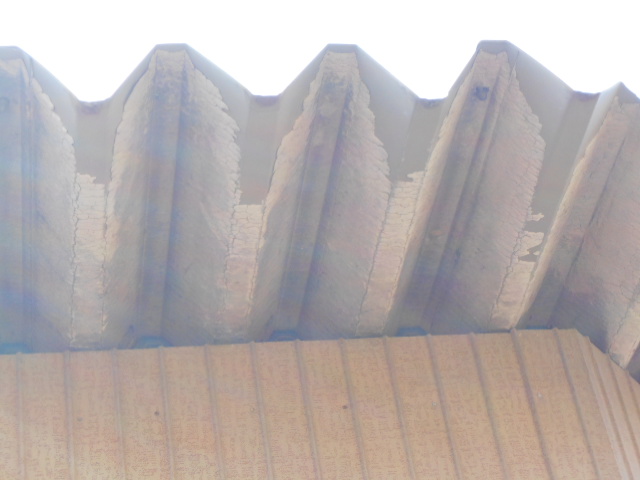 屋根全体を見ていくと折半屋根の表面は塗膜で覆われています。