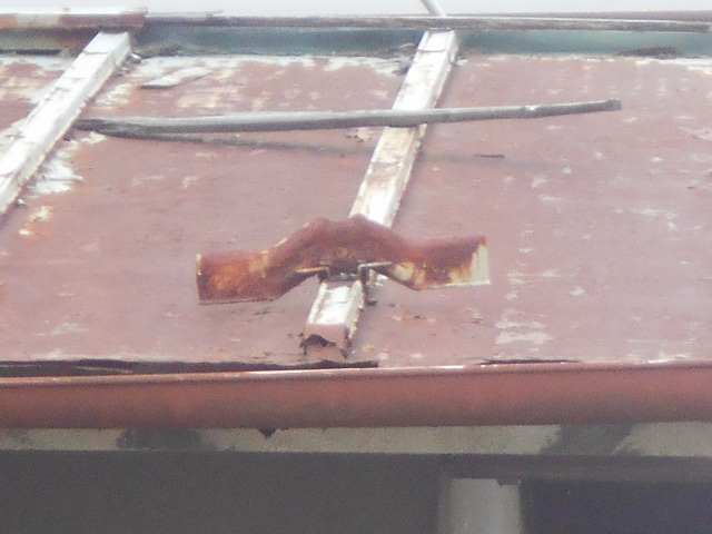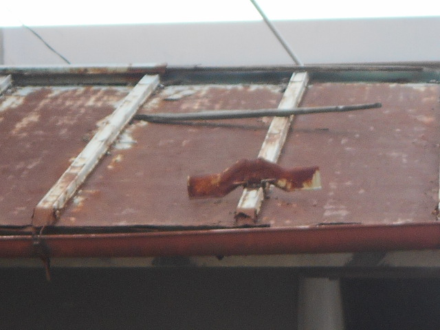 トタンの表面がもともとの色がなくなって、表面が色褪せて屋根の上がって歩いてみるとバリバリとなっているところがありました。