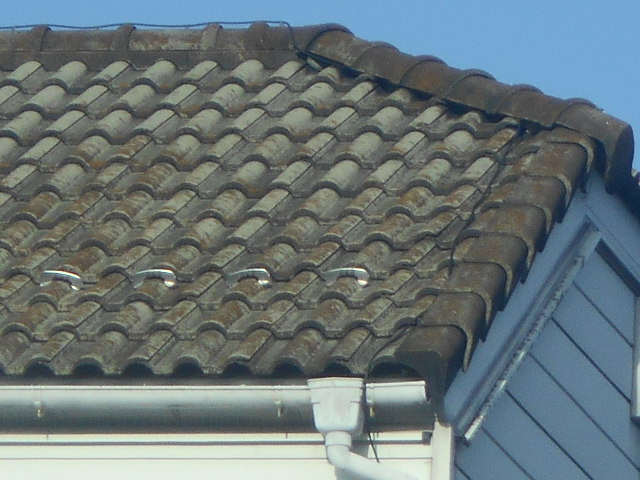 ケラバの瓦も色褪せて苔の発生が見られます。