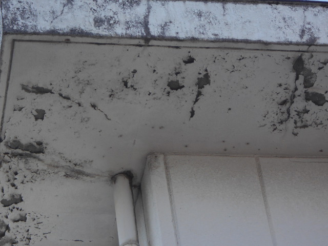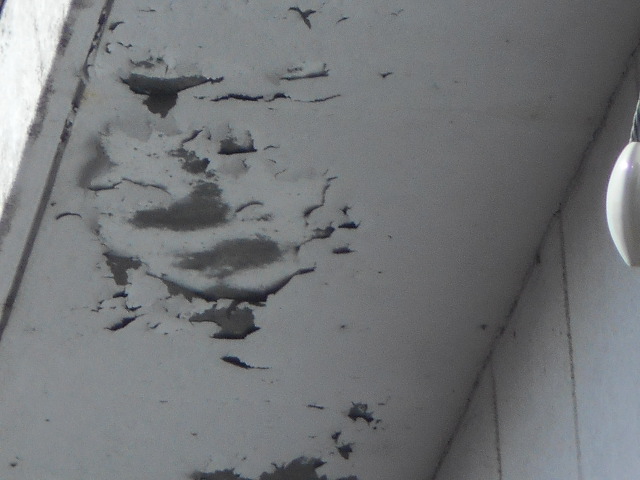 大垣市にて軒天の現場調査に行くと劣化と強風でボロボロになってしまっていました