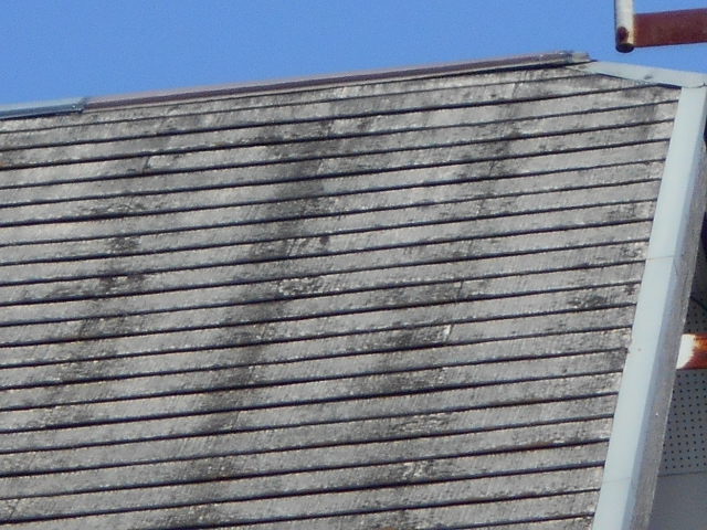 屋根材の素地も見え始めている状態で、雨水を防ぐことができずに染み込んでしまう状態です。