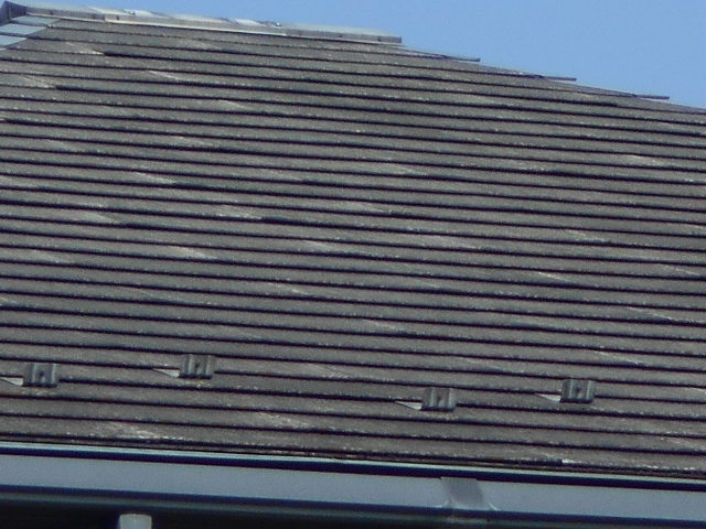 岐阜市にてカラーベスト屋根の現場調査に行くと表面が色褪せて地肌が出ていました