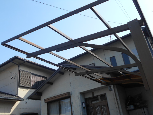 大垣市にお住いのお客様から「カーポート屋根が強風によりパネルが外れてしまった」とご相談をいただきました。