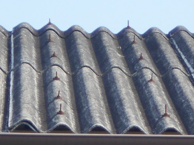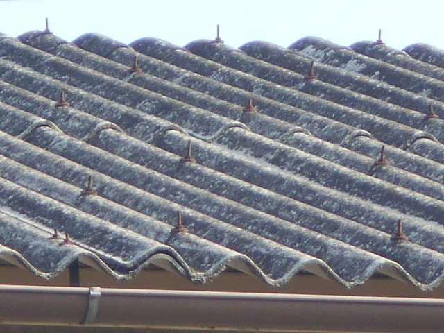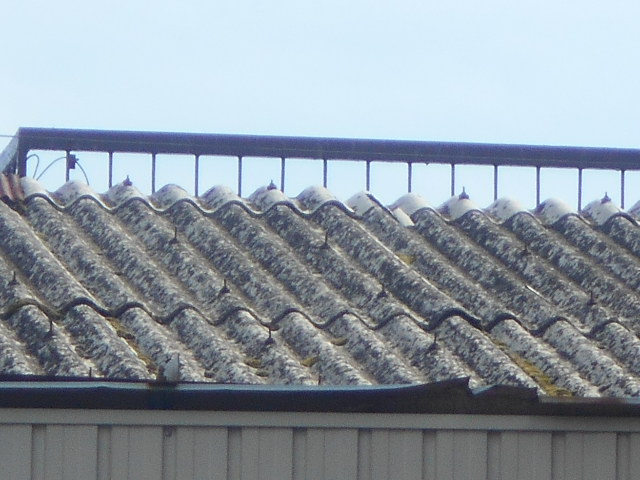 岐阜市にて大波スレート現場調査に行くと表面がボロボロで防水性がなくなっていました