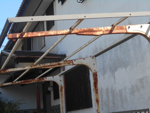 長年車を守ってきたカーポートは雨により空気中の埃が一緒になって落ちてきてそれが紫外線などにより焼き付き取りにくくなっていました。