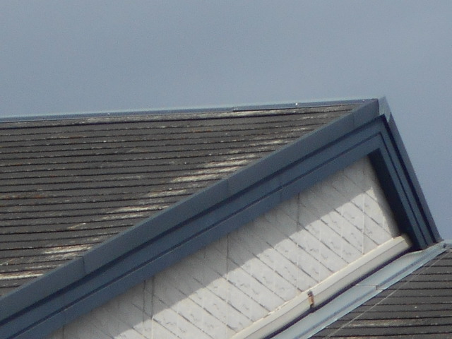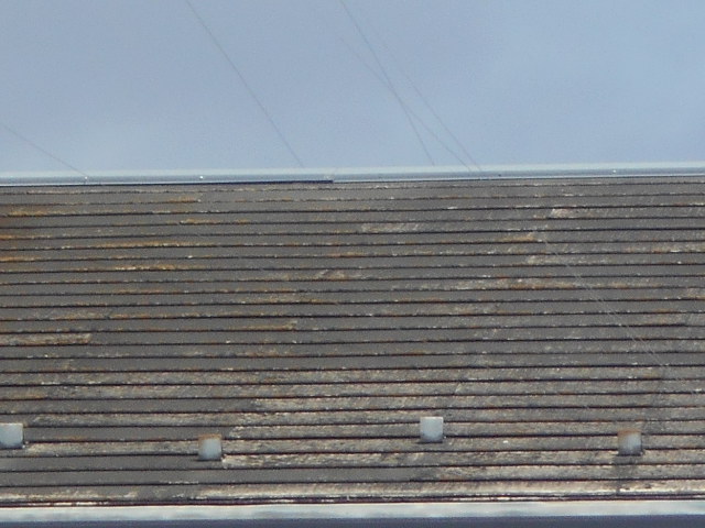 屋根全体の風景ですが、塗膜の劣化とコケや藻も多く広がってしまっていました。