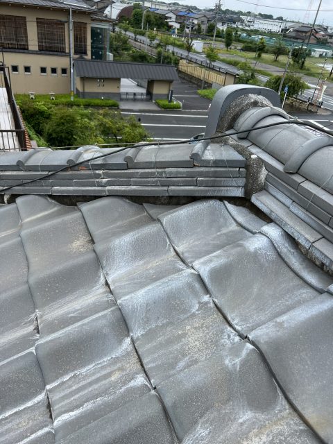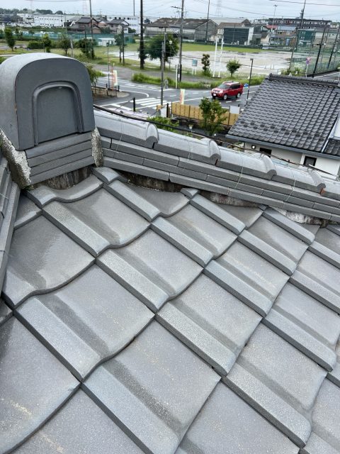 本日は各務原市の立派な瓦屋根のお宅へ無料点検に伺いました。ご相談内容は「屋根の上に漆喰が剥がれて落ちているので早めに修繕してほしい」とのことです。お客様は漆喰が剥がれる事で瓦が崩れてしまうのではないかと心配されていました。ご心配事を解決するため、早速屋根に上がって劣化状態を確認させていただきました。