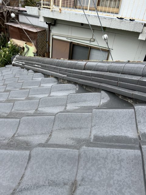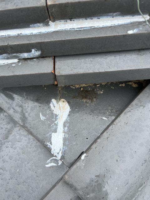 現在、雨漏りは発生していないとの事ですが雨漏りや棟の崩れが懸念されますので、お客様に調査のご報告をし棟取り直し工事をご提案致しました。