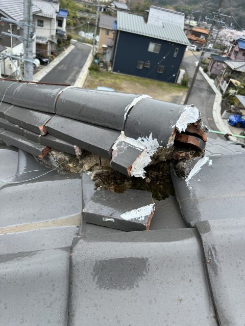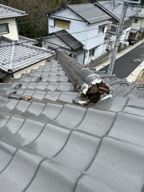 可児市にて漆喰が剥がれた瓦屋根の調査、棟取り直し工事をご提案