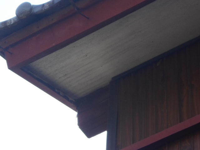 大垣市にて軒天の現場調査に行くと経年劣化によってべニアもボロボロになっていました