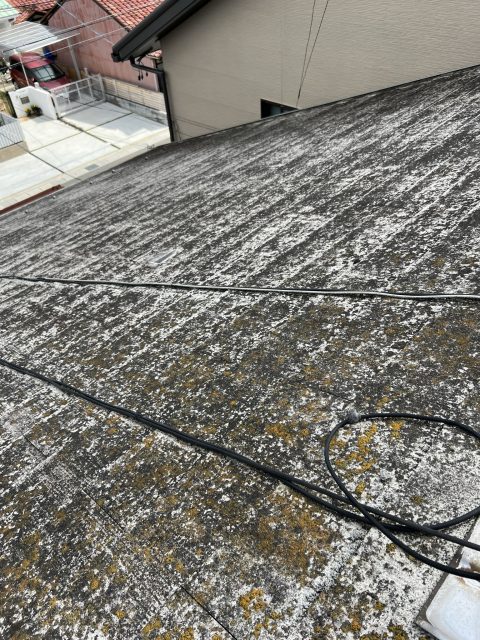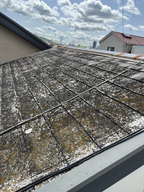 塗膜も防水機能を失っているのがわかりました。築年数とともにスレートの塗膜も徐々に劣化していきます。