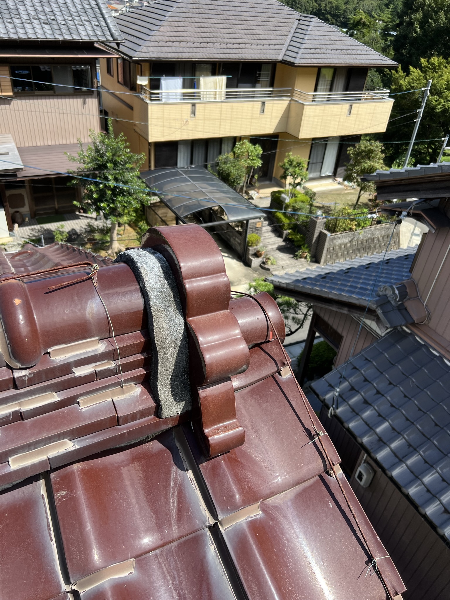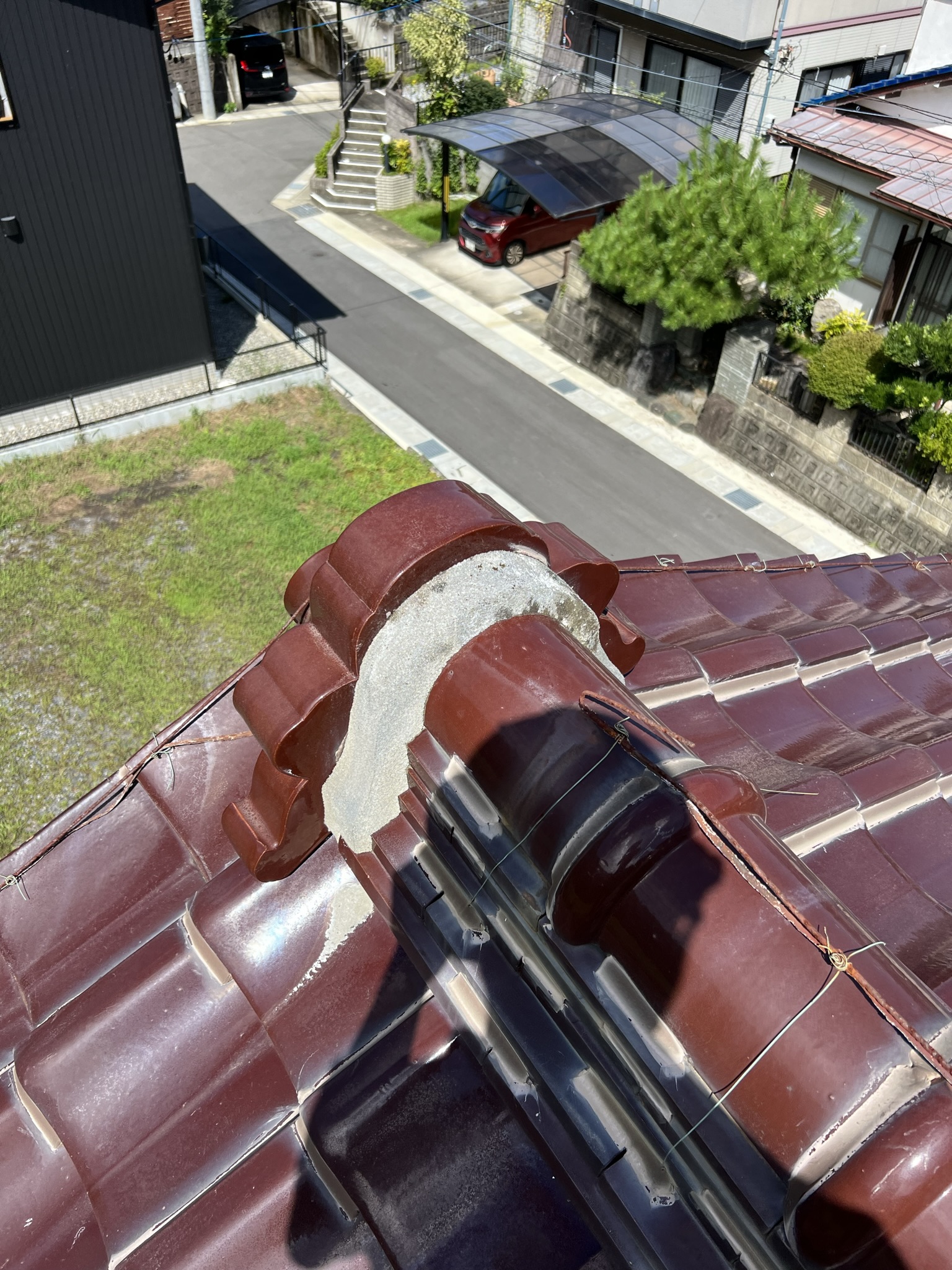 大垣市にて日本瓦の漆喰の現場調査に行くと漆喰が剥がれていたので詰め直しを提案