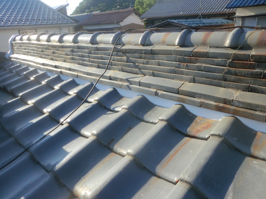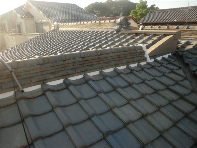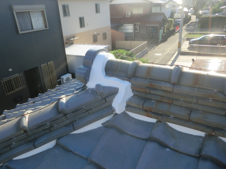 岐阜市 瓦屋根の点検 三日月漆喰しっくい補修工事を行いました。