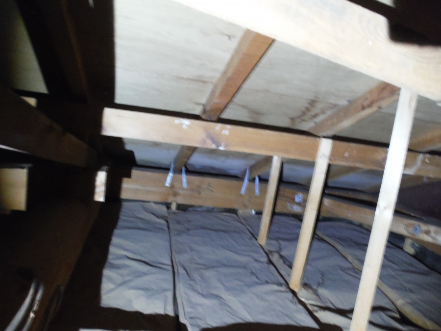 押し入れの枕棚の上のベニヤを持ち上げそこから小屋裏に入ります。