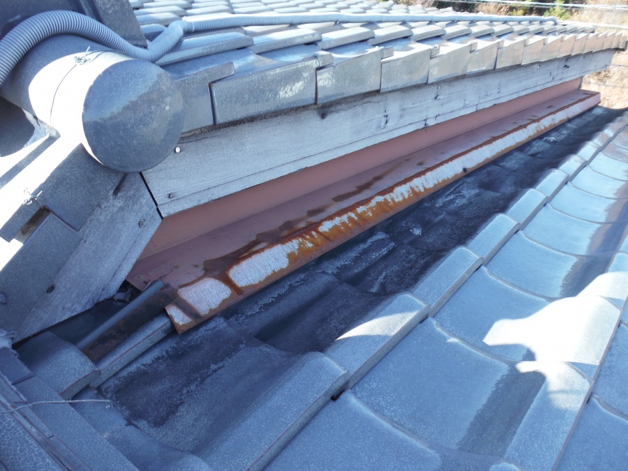 棟の段違いがあり、板金で雨を抑えていますが、さび等劣化がひどく見られます。