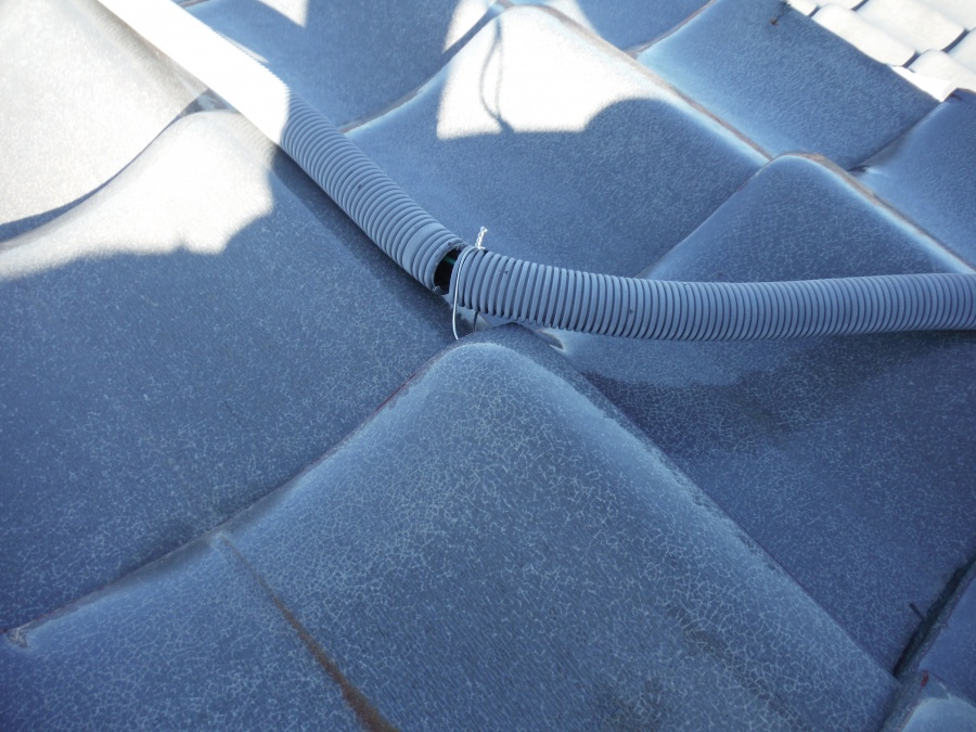 12年ほど前に太陽光パネルを載せられたそうです。当時のケーブルの被覆材はPF管といわれるシングル被覆の配管が主流でした。